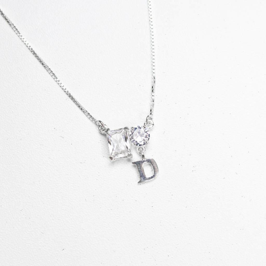 Colar Inicial com Zircônia Redonda e Quadrada em Prata 925